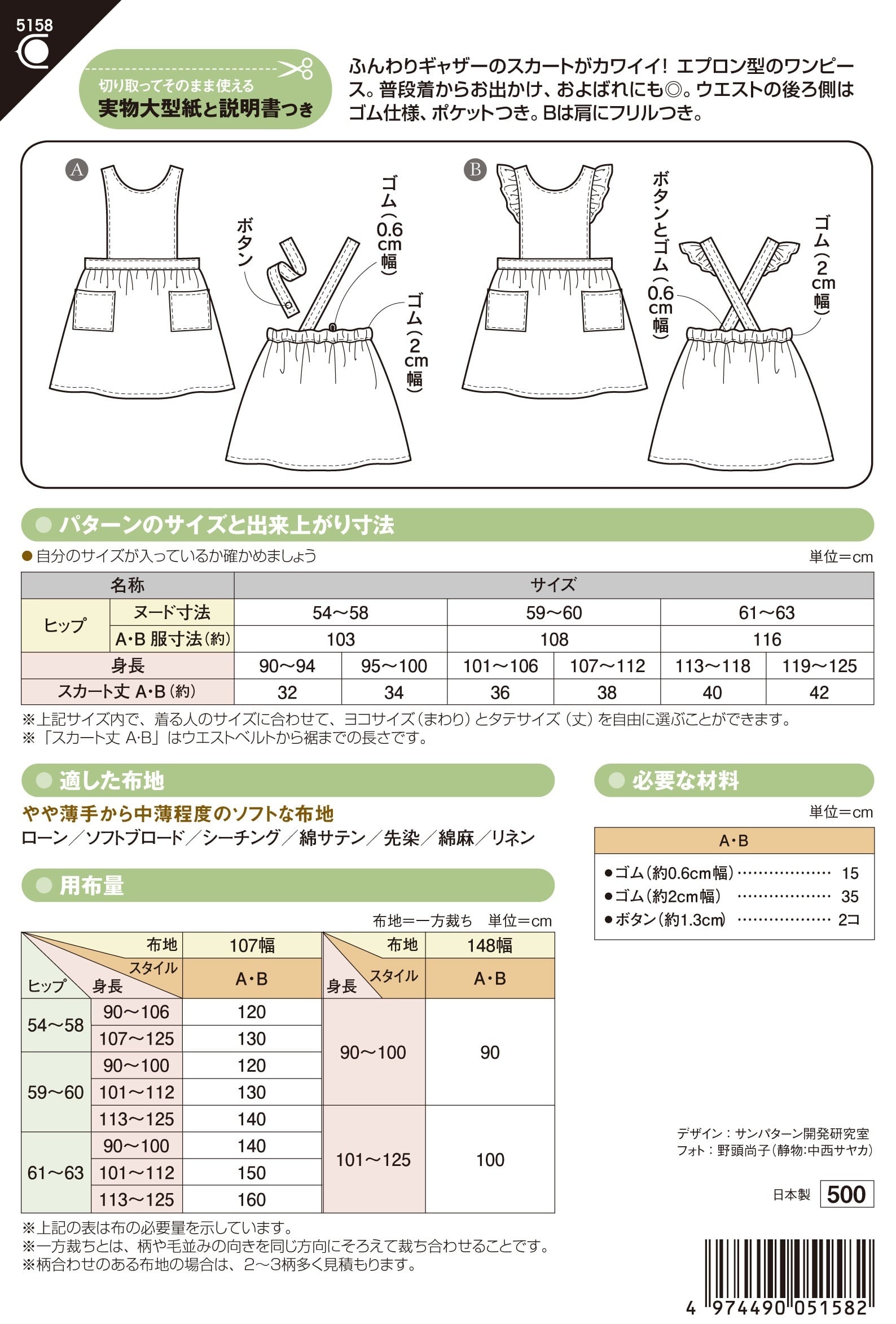こどもエプロンドレス 5158型紙、パターン専門ショップ アールパターン。