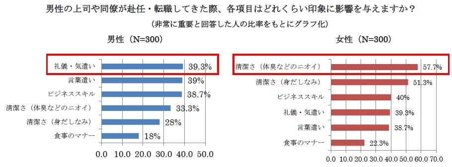 第一印象 男性上司のどこが気になる?男性は「礼儀・気遣い」女性は「体臭などのニオイ」ザ・世論~日本人の気持ち~ダイヤモンド・オンライン。