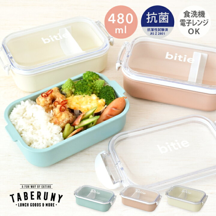 お弁当箱 小学生 女の子 1段 480ml〜600ml こども用お弁当箱 大人 女子 弁当箱 一段 子供 子ども キッズ 男の子 女性 中学生かわいい おしゃれ シンプル おすすめ 電子レンジ対応 食洗機対応抗菌 bitie ランチボックス レクタングル480ml 82591タベルニー。