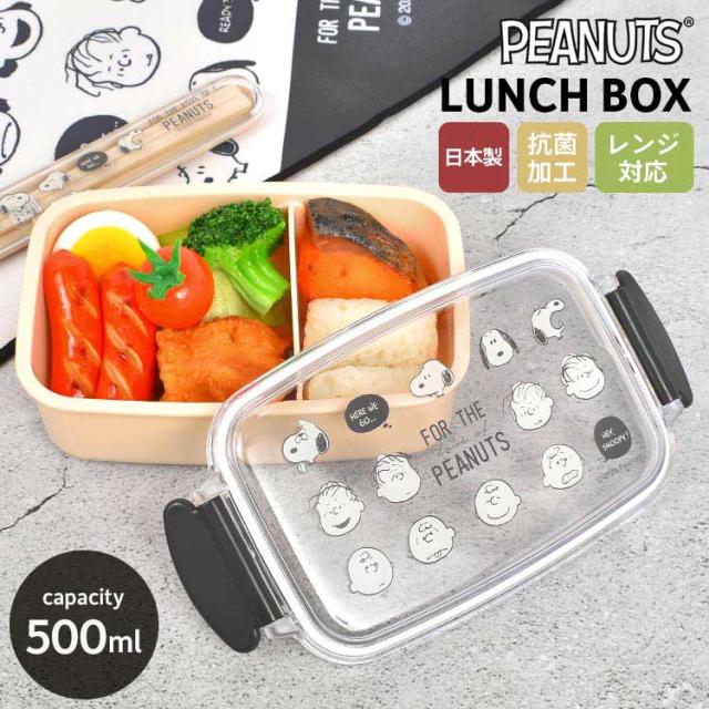 弁当箱 女子 大人 一段 スヌーピー ランチボックス 小学生 子供 女の子 1段 お弁当箱 500ml 日本製 レンジ対応 抗菌 仕切り 四角 透明ベージュ ブラック ホワイト モノクロ かわいい シンプル おしゃれ SNOOPY PEANUTS ランチ グッズ キャラクター 中学生 高校生。
