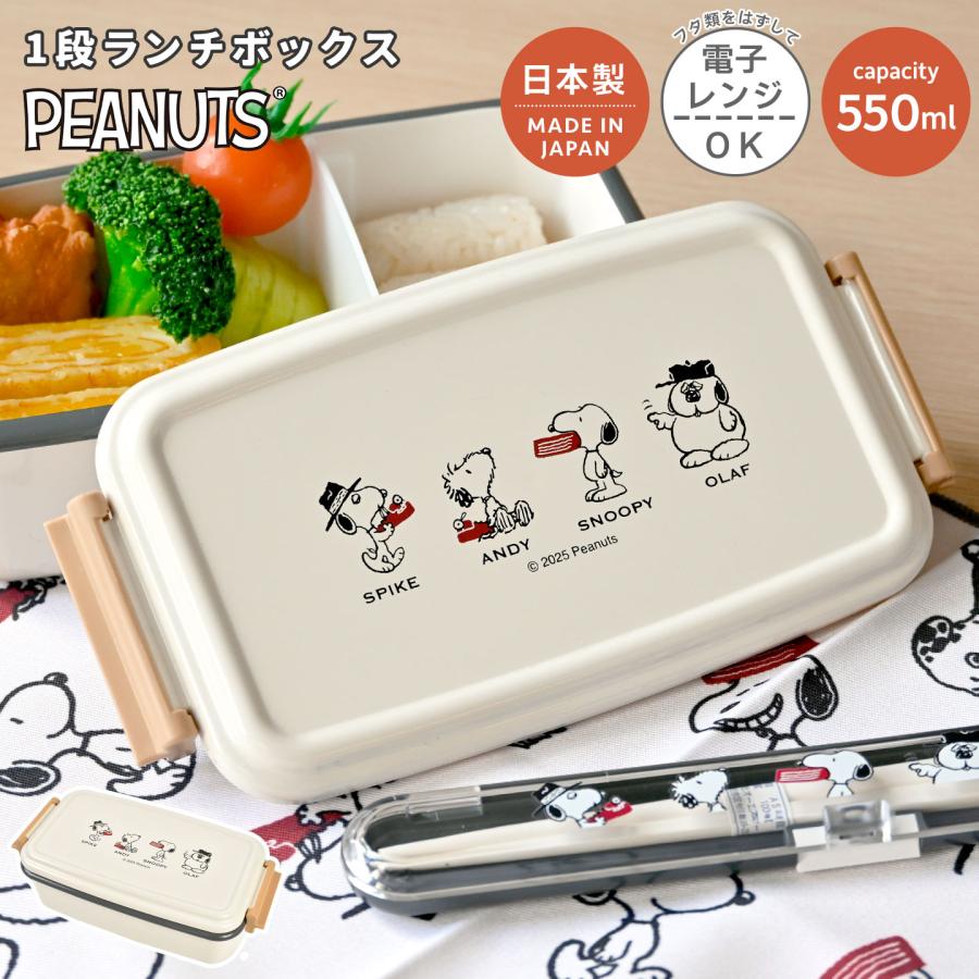 弁当箱 1段 スヌーピー SNOOPY 500ml レンジ対応 日本製 お弁当箱 かわいい おしゃれ 大人 子供 女子 小学生 中学生 高校生仕切り付き パッキン付き ランチボックス 女の子 男の子 キャラクター グッズ シンプル 通勤 通学 遠足 幼稚園 キッズ 白 ベージュ ブラウン。