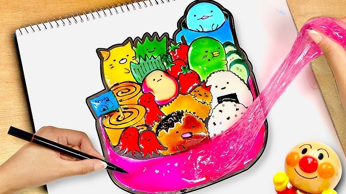 すみっこぐらし弁当のスライム絵♪ キャラ弁を作ろう!子供が喜ぶぬりえをしよう!★ Drawing slime for kids。