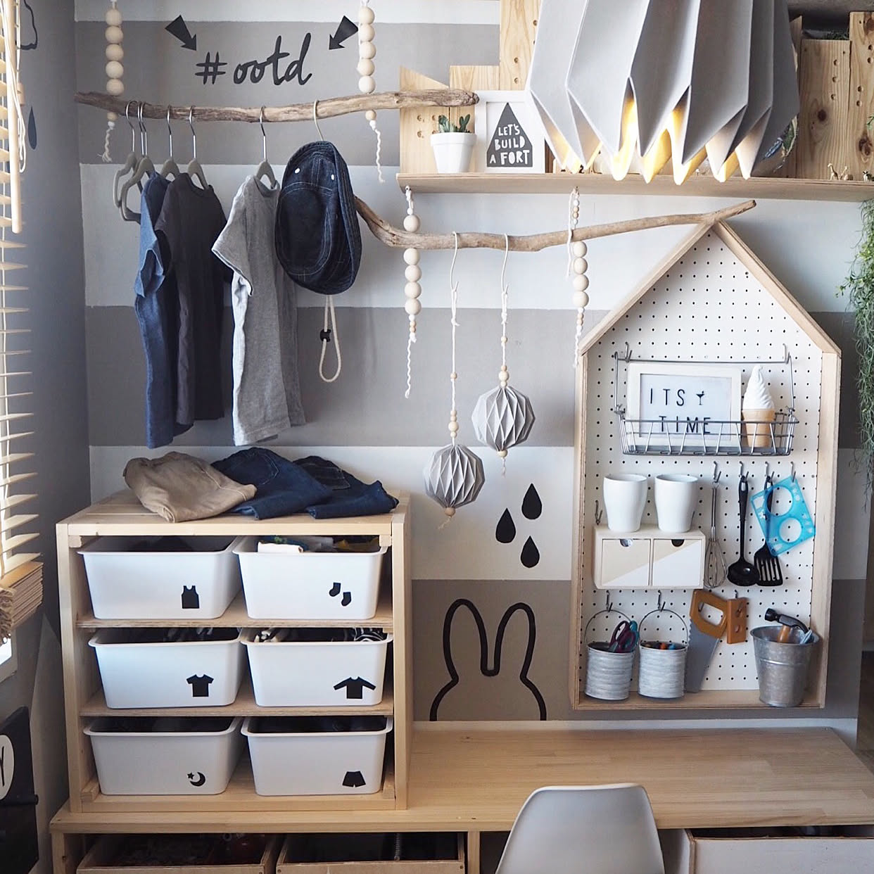 子どもが服を自分でお片付けする棚、置きました 優木まおみさんの笑顔ぐらしLEE。