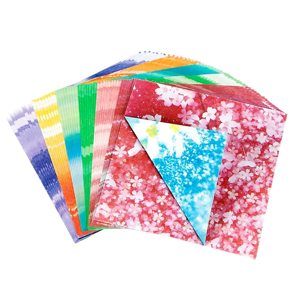Amazon.co.jp: Dorasu 折り紙 セット 千羽鶴折り紙 両面 おりがみ 高級 かわいい 柄 色とりどりの星空 ロマンチックな空 桜の花95Cmx95cm カラフルな折り紙学生宿題手作り折り紙 DIY 装飾 創作 単色 手芸紙 彩色紙 プレゼント 誕生日 400枚 落下する桜 :。