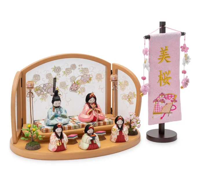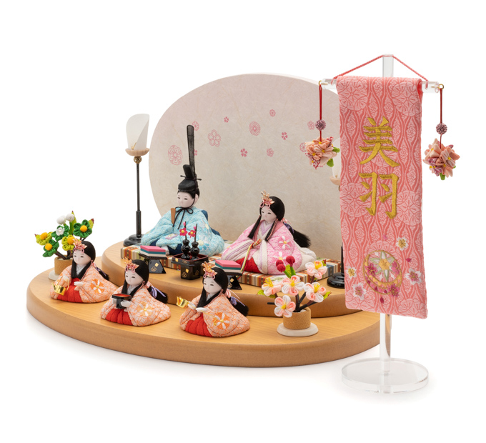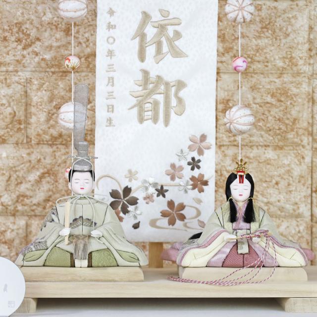 一秀 雛人形 名前旗 女の子 刺繍 コンパクト おしゃれ桃山雛 二人 桜しずね 名前旗飾り R7-B-16-7-28 木目込み ひな人形 -メルカリ。