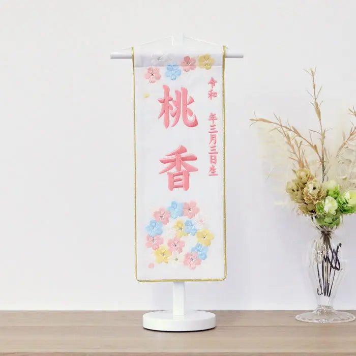 雛人形 名前旗 女の子 刺繍 雛祭り 節句 コンパクト 桜咲 小サイズ20 選べる5。