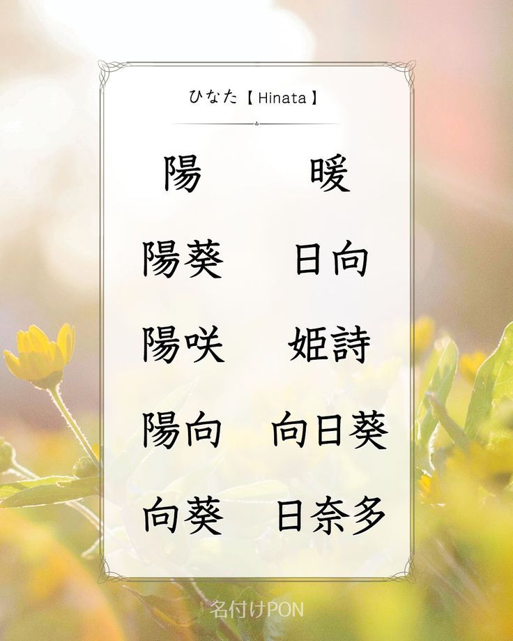 名付けポン 赤ちゃんの名前集on X: "「ひな」と読む女の子の名前・漢字 その1 「ひな」は愛らしい響きで人気です。お日様の暖かさを感じる名前 、クールな印象の名前など、さまざまな漢字で表現しました。 その2に続きます名付けポン名付け名前女の子の名前。
