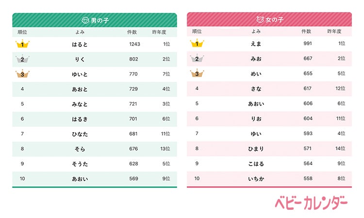 2024年赤ちゃん命名・名前ランキング 令和6年度 アカチャンホンポ。