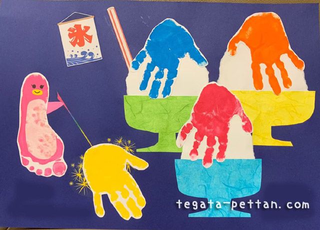 手形アートの夏らしいデザインを紹介します◇花火・かき氷・他。