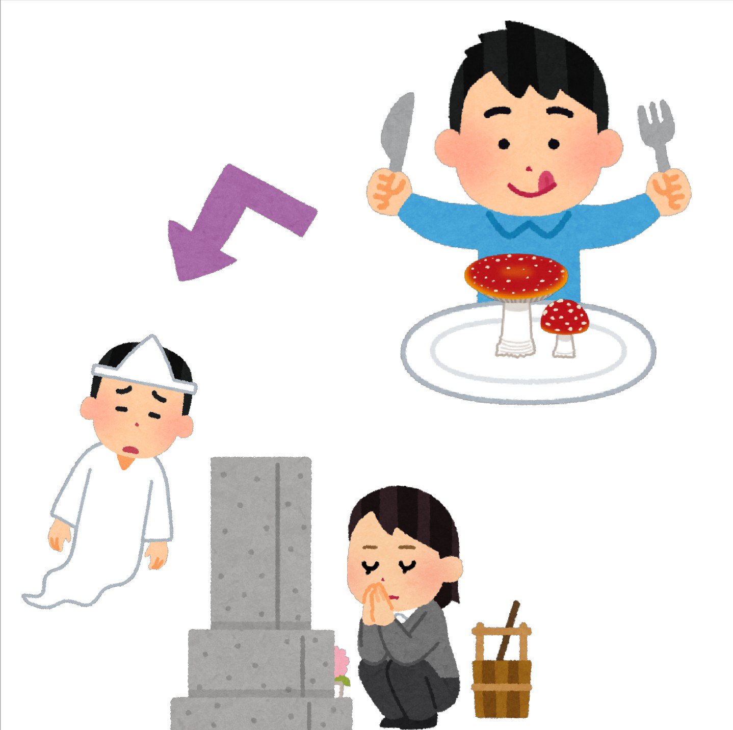 まいチクをいらすとやで再現 on X: "@dayukoume 再現難易度 使ったイラスト:5枚 食事をする人のイラスト 男性・ナイフとフォークベニテングタケのイラスト 矢印のイラスト 直角お墓参りのイラスト 女性若い幽霊のイラスト 男性・哀まいにちチクショー。