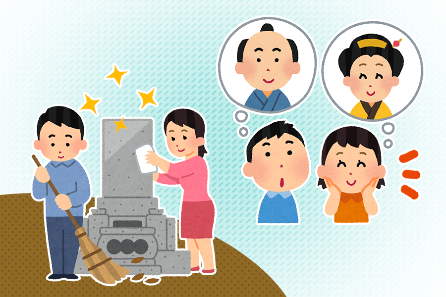 お墓参りイラスト - 先祖の供養のイメージフリー素材 - チコデザ。