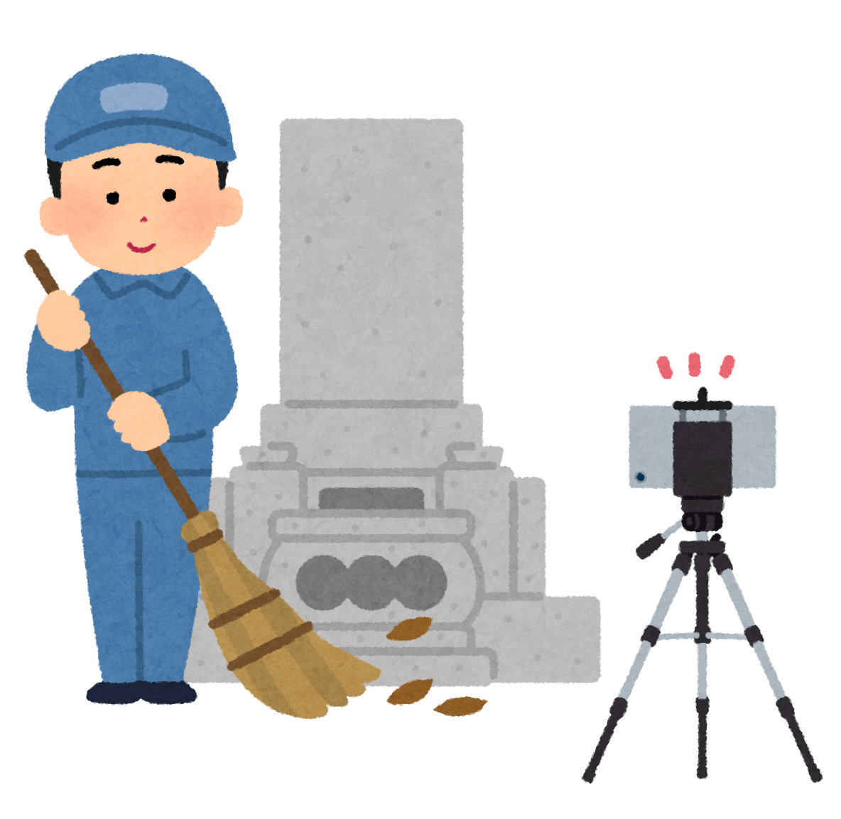 墓掃除をしている業者のイラストかわいいフリー素材集 いらすとや。