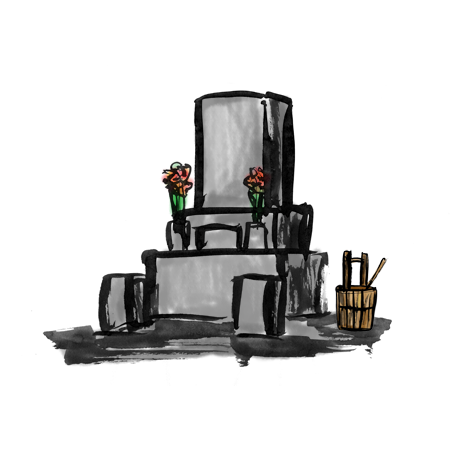 お墓参り お墓の墨絵イラスト 無料素材。