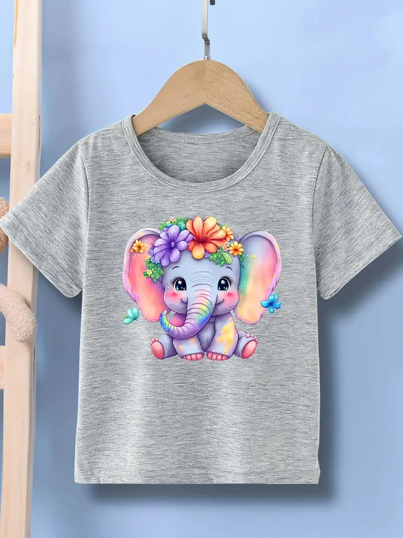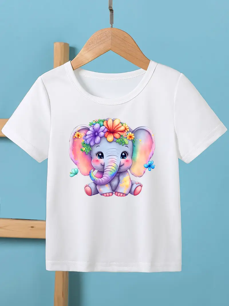 女の子花象グラフィック半袖 tシャツ夏休みパーティー子供服Temu Japan。