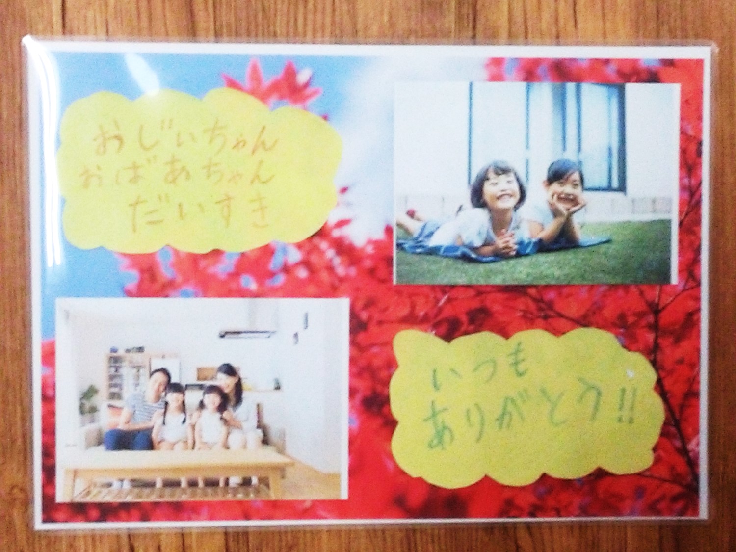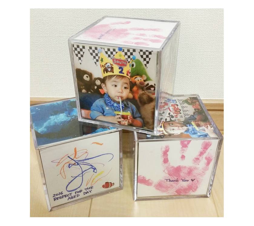 敬老の日に、子どもの写真で手作りプレゼントインク革命.COM。