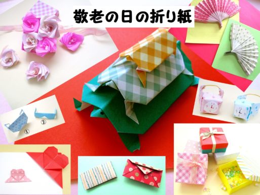 敬老の日の折り紙で簡単なプレゼント。花やカード等の折り方。幼稚園や保育園の子供の手作り製作にもおすすめおりがみっこⅡ。
