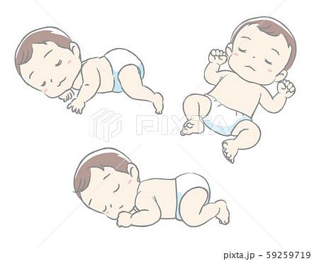 寝ている赤ちゃんのポーズ素材セット。手書き風のイラスト素材59259719- PIXTA。