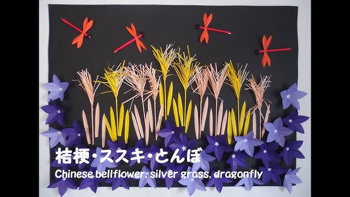 工作ネタ 桔梗・ススキ・とんぼChinese bellflower, silver grass,dragonfly 9月秋壁面飾り高齢者レク・OT・デイ・保育知育おりがみ・簡単立体。