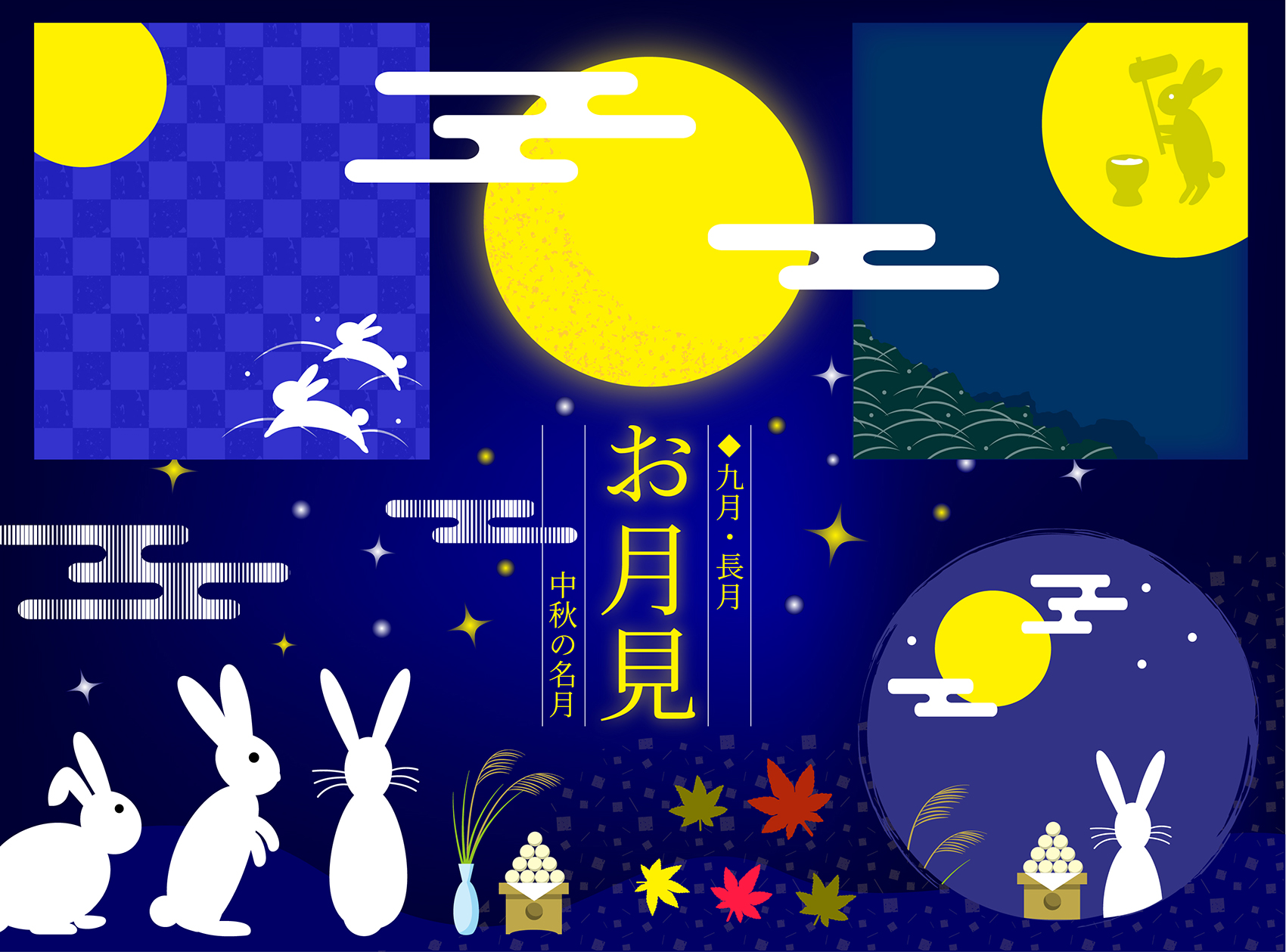 壁面飾り工房本店 壁面装飾・パネルシアター・ペープサート・型紙・知育・保育・介護商品の販売☆無料ダウンロード型紙「十五夜」お月見 秋 満月 9月幼稚園 保育園 老人ホーム 介護施設 デイサービス 壁面装飾 型紙 製作 イベント タイトル☆。