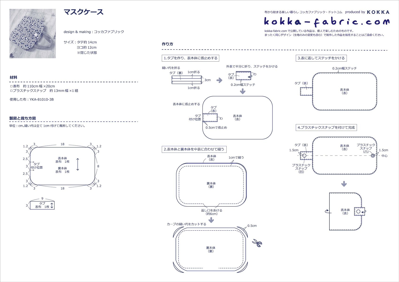 型紙不要 10分で作れる!マスクケースの作り方3種nunocoto fabric。