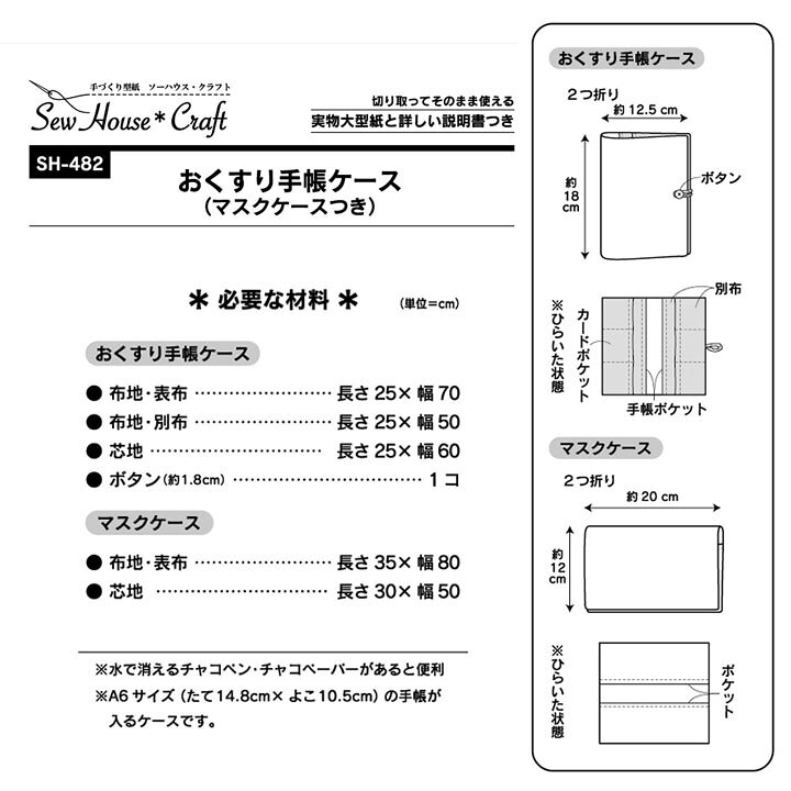 楽天市場 SewHouse*Craft おくすり手帳ケース マスクケースつきSH482型紙 パターン ソーイング 洋裁 手作り ハンドメイド簡単 実物大型紙 サンプランニング : 手芸材料の通信販売 シュゲール。