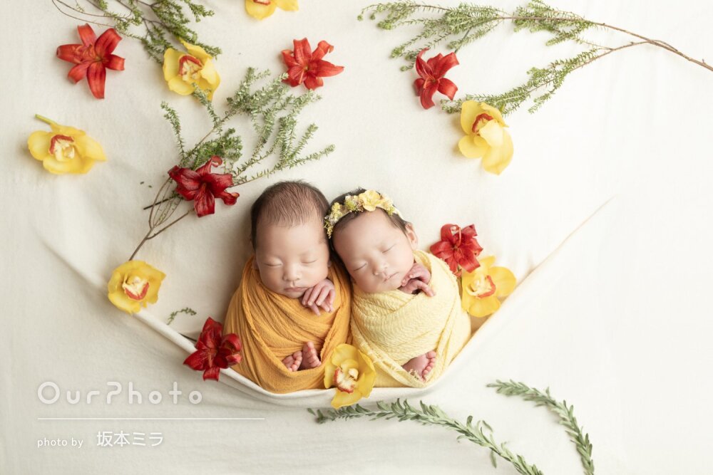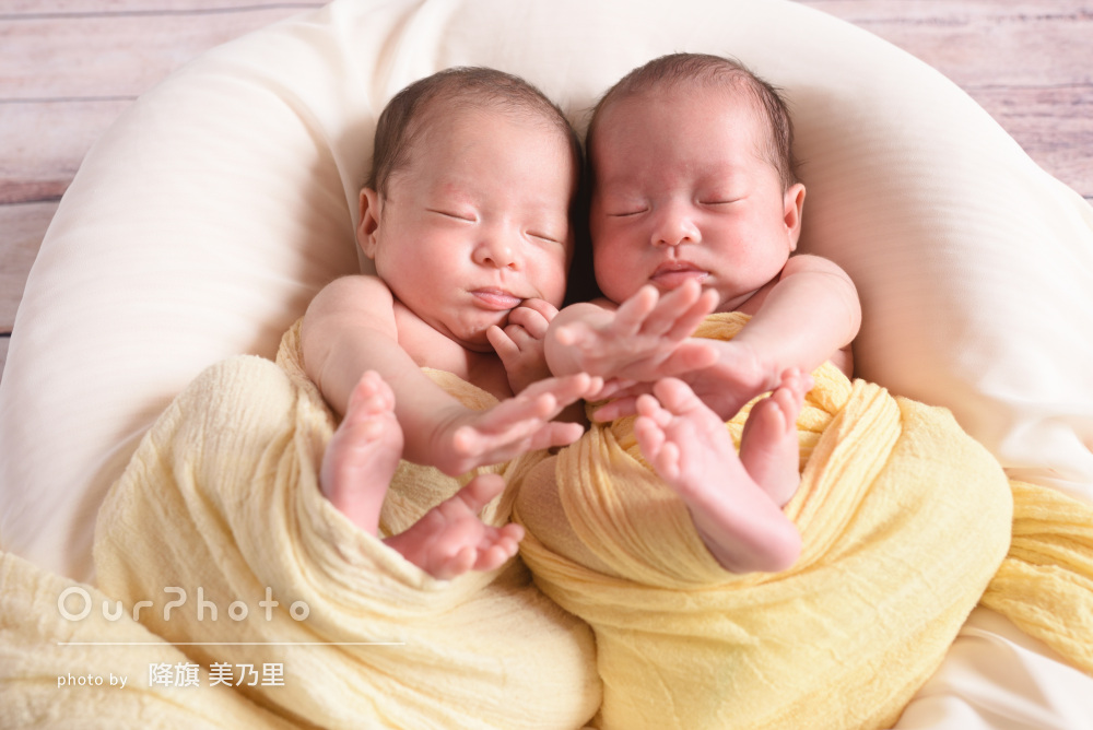 素敵な思い出作り」双子の赤ちゃんの可愛いニューボーンフォトの撮影OurPhoto アワーフォト。