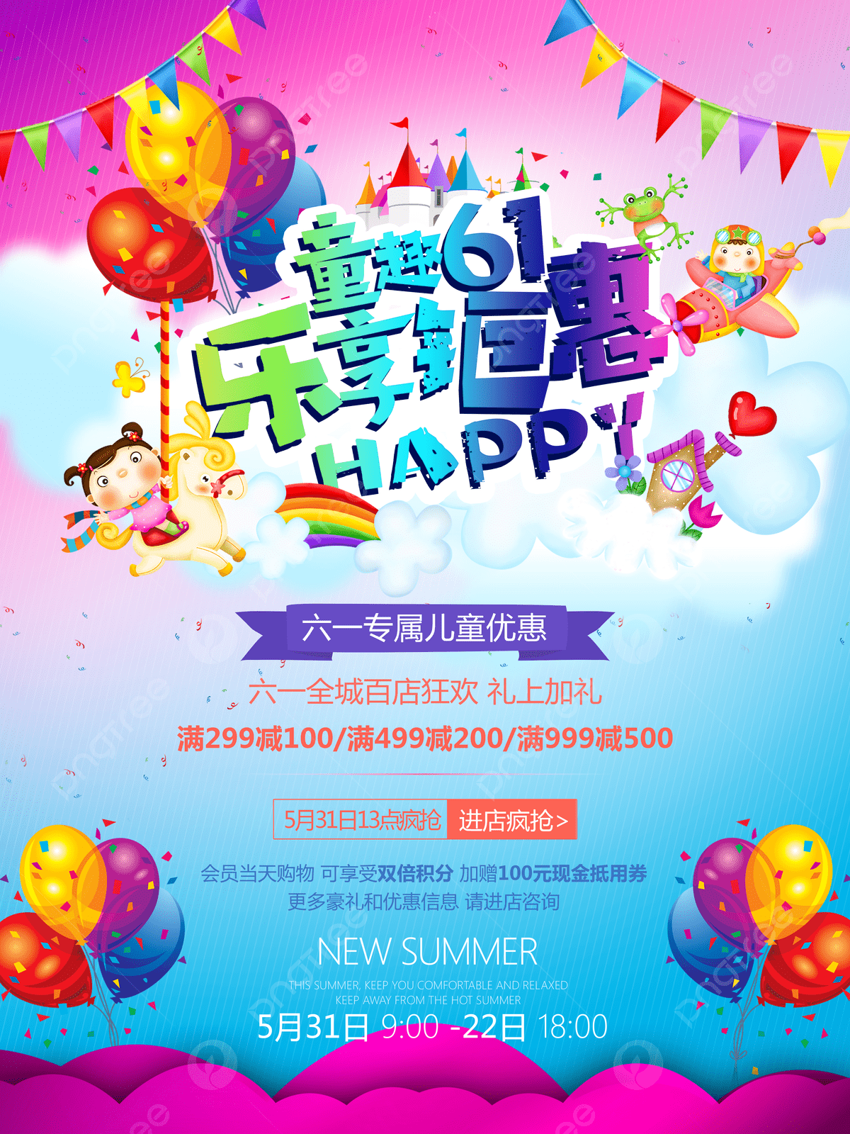 子供向けの六一楽享巨惠ポスターデザインイラストテンプレート素材PSDダウンロード。