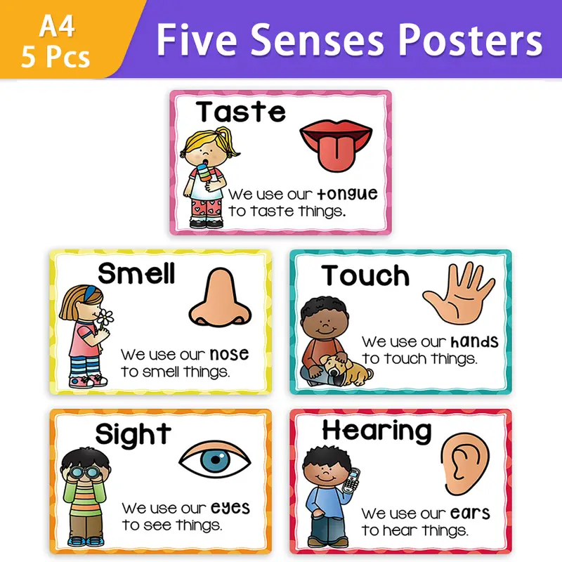 5枚入り 教育五感ポスター 子供向け 就学前教室学習 高品質紙壁画 防水層 環境インク 大サイ - Temu Japan。