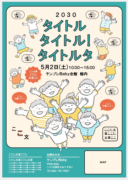 子供フェスタ、イベント、A3ポスター&チラシ、Word60615Wordの印刷物・チラシ無料テンプレートなら「テンプレBaby」。