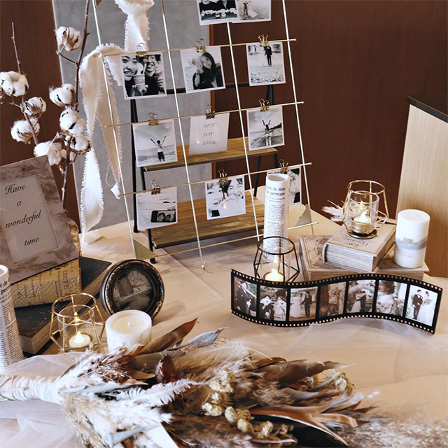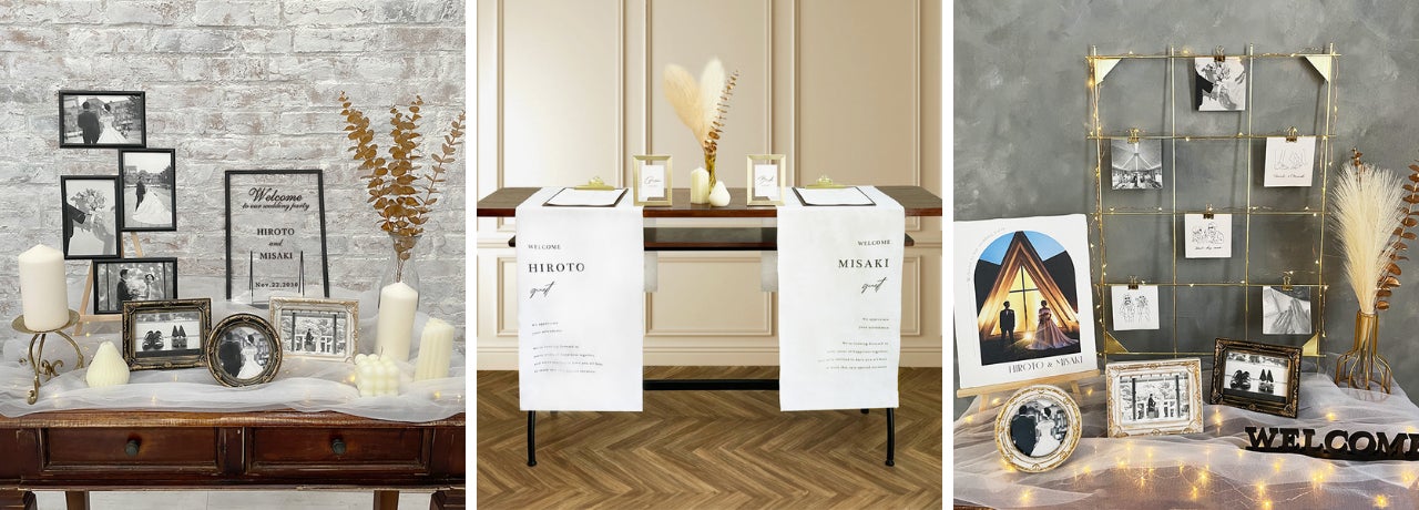 結婚式のウェルカムスペースアイテムがセットで揃う!写真を飾ったシンプルな装飾が人気│PIARY。