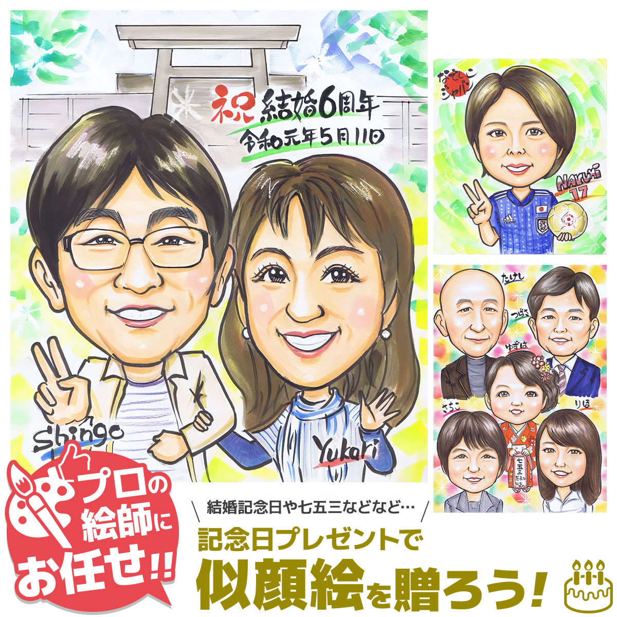 似顔絵 家族 お祝い プレゼント 結婚記念日 いちろ作 受賞歴あり : 似顔絵オレンジスマイルヤフー店 - 通販 - Yahoo!ショッピング。