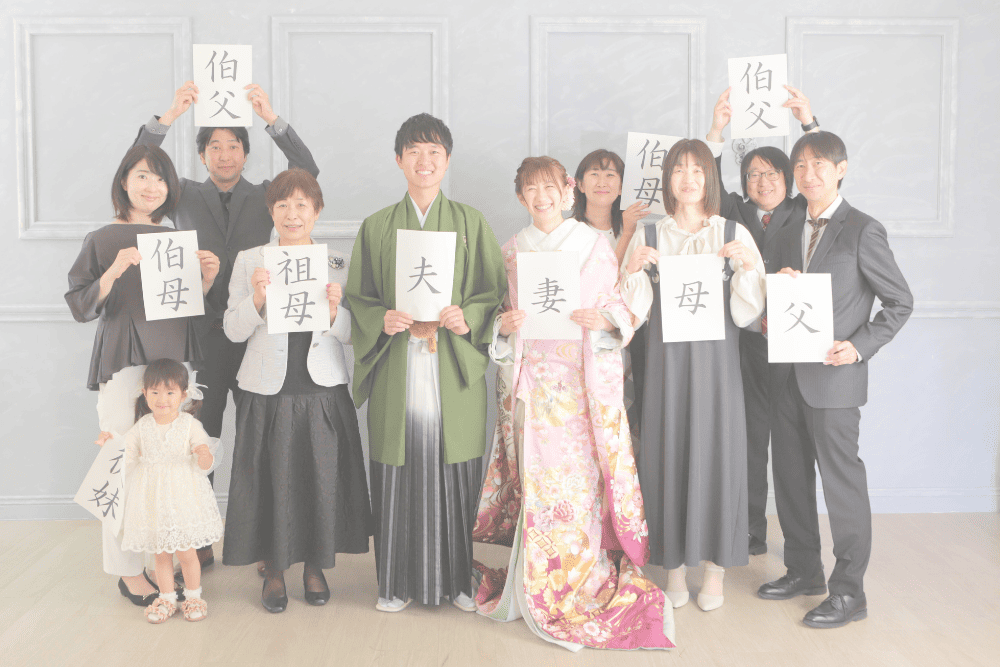家族写真・各種記念写真。還暦祝い、結婚記念日岐阜創寫舘撮影時衣装レンタル0円のフォトスタジオ。