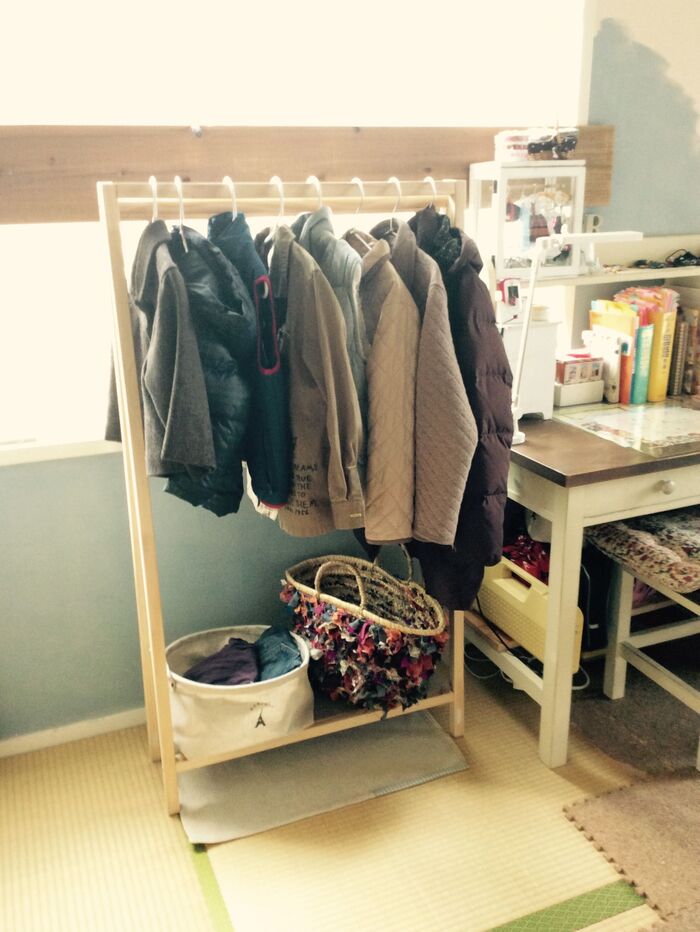 DIY☆子供の上着、自分たちで選んでサッと着られる折りたたみラックハンドメイドの作り方・アイデア暮らしニスタ。