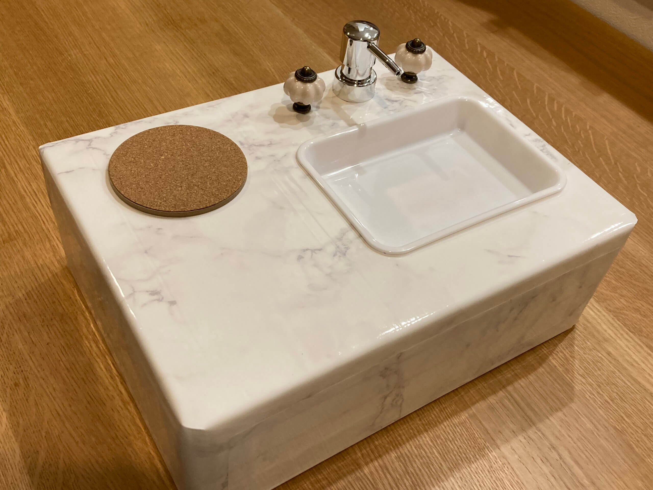 DIY 発泡スチロールで卓上おままごとキッチンを作成木のおうちの暮らし。