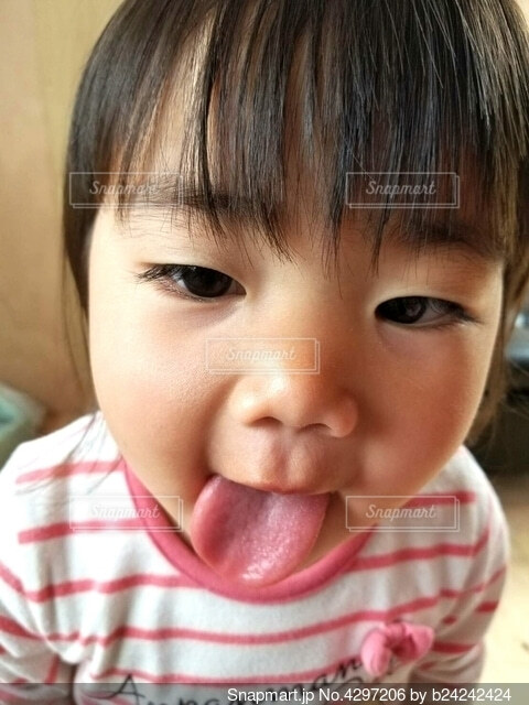 舌を出している赤ちゃんの写真の写真・画像素材-Snapmart スナップマート。