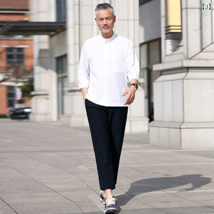 楽天市場 メンズ かっこいい しぶい 高齢 イケおじ オシャレ お父さん サマー スーツ メンズ 夏 七分袖 シャツ 長袖お じいちゃん 薄手6070歳 : YKC8。