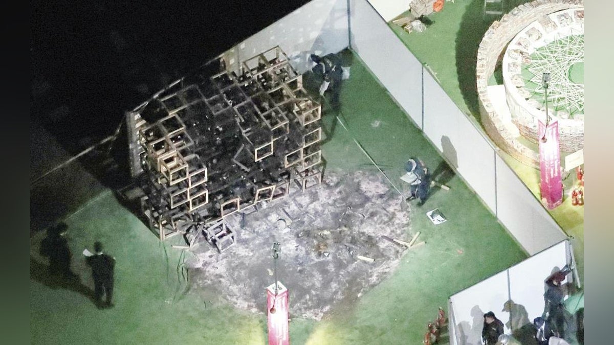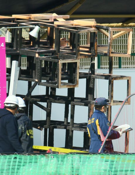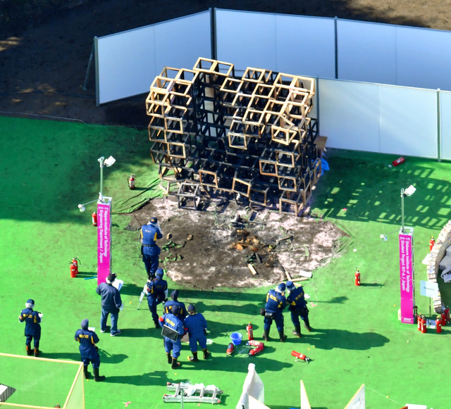 明治神宮外苑のイベント会場で燃える木製 :神宮外苑のイベントで火災 写真特集:時事ドットコム。