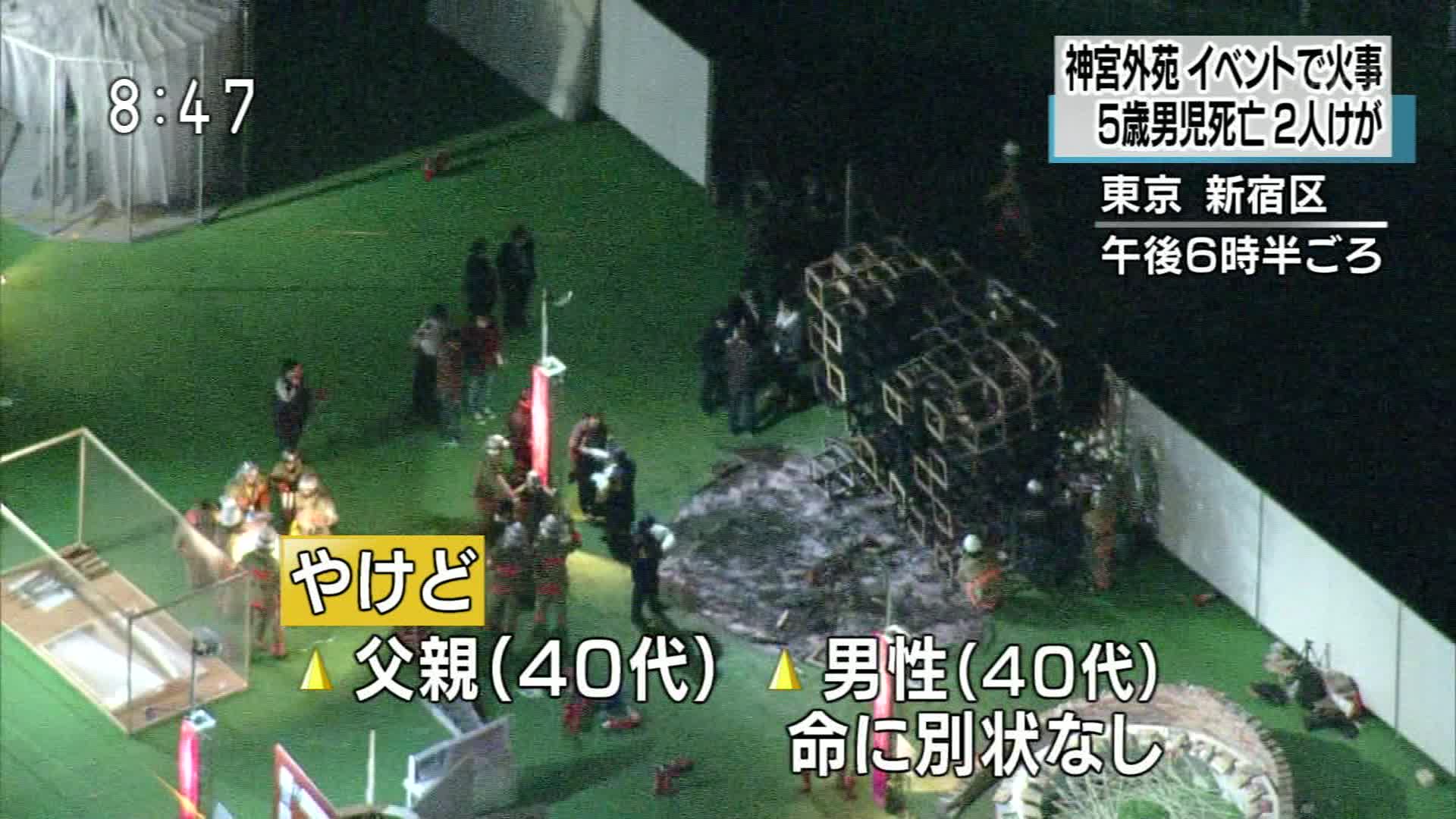 神宮イベント火災 5歳男児死亡、父親ら2人けが 展示の木製遊具燃える - 産経ニュース。