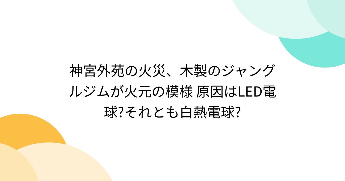 神宮外苑の火災、木製のジャングルジムが火元の模様 原因はLED電球?それとも白熱電球? - Togetter。