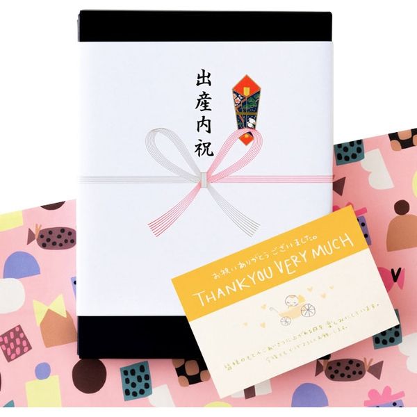 出産内祝い専用 女の子 プレミアムカタログギフト S-EO紅白蝶結び 出産内祝用メッセージカード BB-1包装紙:スイーツ直送品-アスクル。