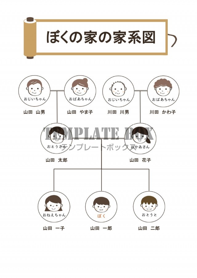 自分の家系図を作ってみよう♪小学生の自由研究におすすめ☆かわいいイラスト入り家系図のテンプレート!無料テンプレートTemplateBox。