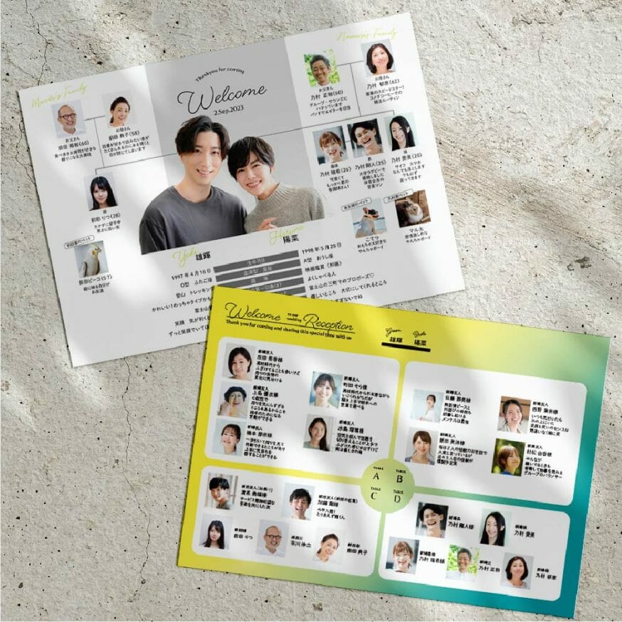 家系図&ゲスト紹介入り がW演出ステキ!席次プロフィールおしゃれな結婚式を綴るコラム ファルベ。