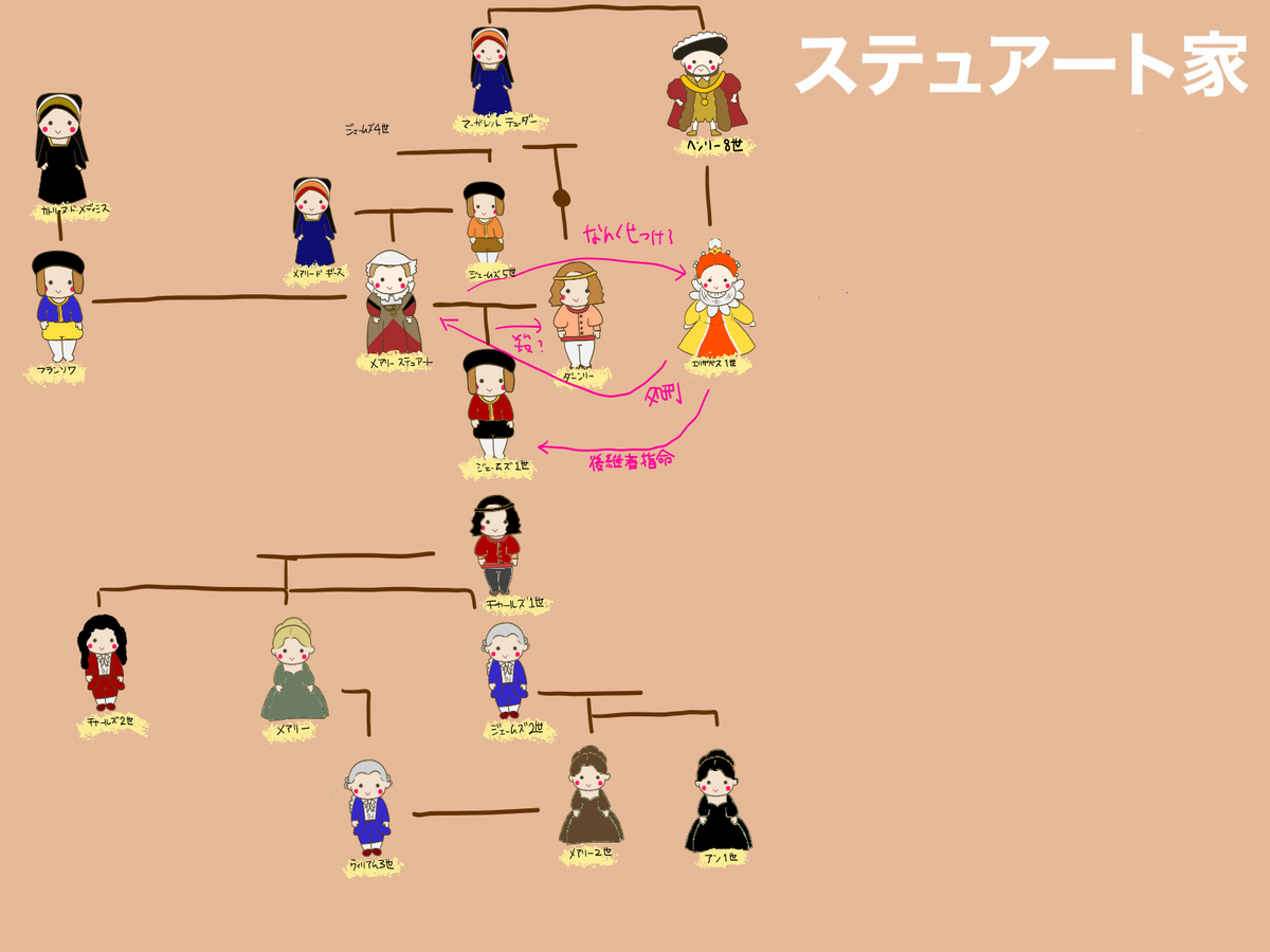🏴🇬🇧スチュアート朝 - フリー素材で相関図&家系図を作る。