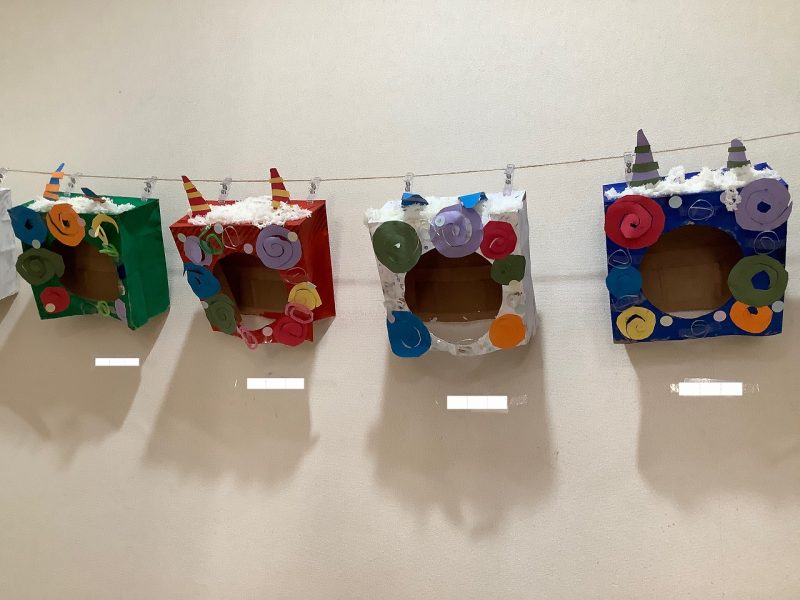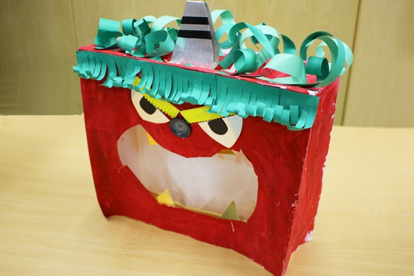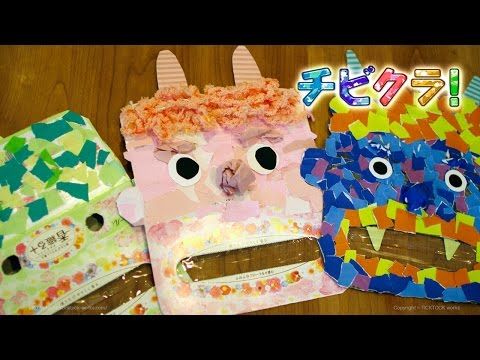 ティッシュの空き箱で鬼の面を作ろう! チビクラ!。