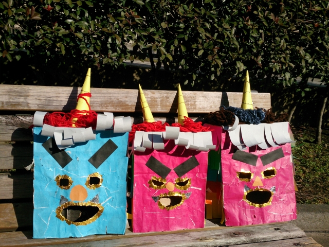 そら組 「紙袋で鬼のお面作り!」にじいろ保育園ブログ。