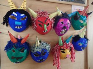 鬼のお面 神視保育園年長組- 絵画造形総合グループえむスタジオ。