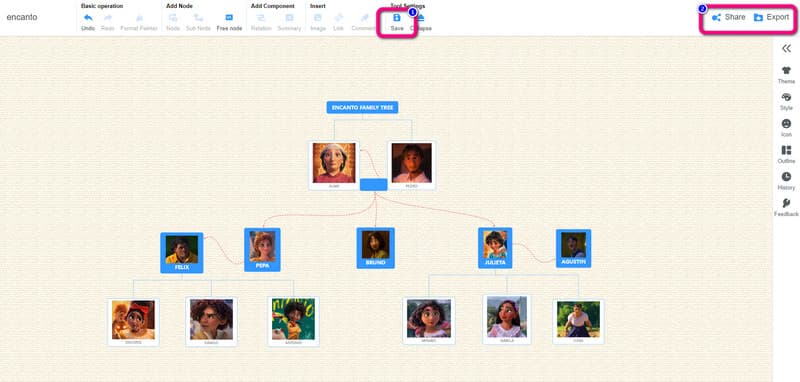 詳細かつ完全なエンカント家系図を必ずご覧ください。