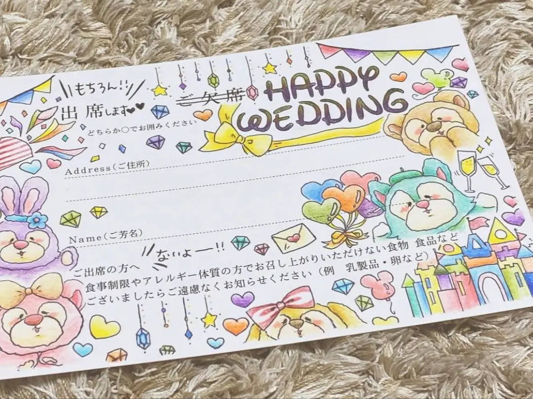 可愛いキャラクターの招待状返信アートまとめmarry マリー。