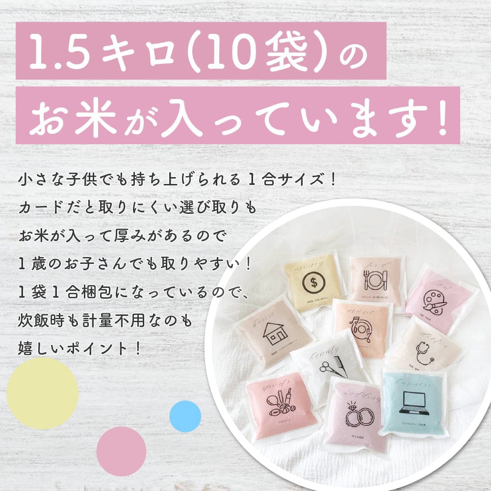 選び取り お米 ギフト お祝い 米ギフトお米屋さんの 選び取り米『 1合約145g×10袋=1升』 選び取りカード 一升餅の代わり 一生米一生餅 初誕生 1歳 一歳 誕生日 イベント 赤ちゃん ベビー 新米 コシヒカリ 一等米 小分け おしゃれ お洒落 かわいい 人気 インスタ。
