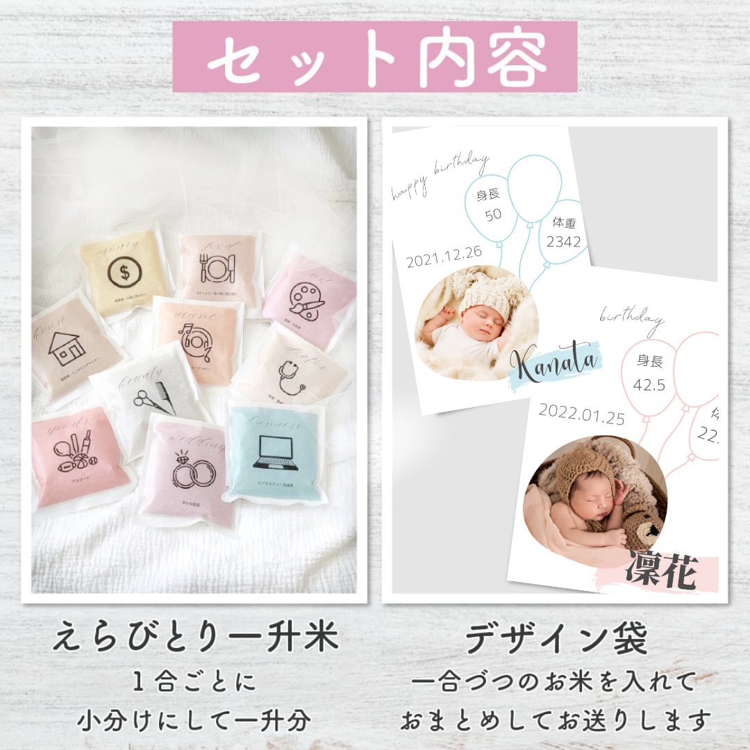 一升米 選び取りカード付 写真 オリジナル 一歳 お祝い お配り 一合×10包 小分け こしひかり メッセージ その他ギフトセット 福結び 通販16350182Creema クリーマ。